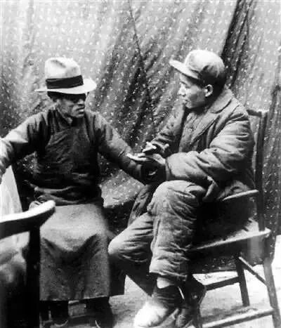 1938年1月,毛泽东在延安会见来访的梁漱溟,这张坐姿简直不能再霸气了!