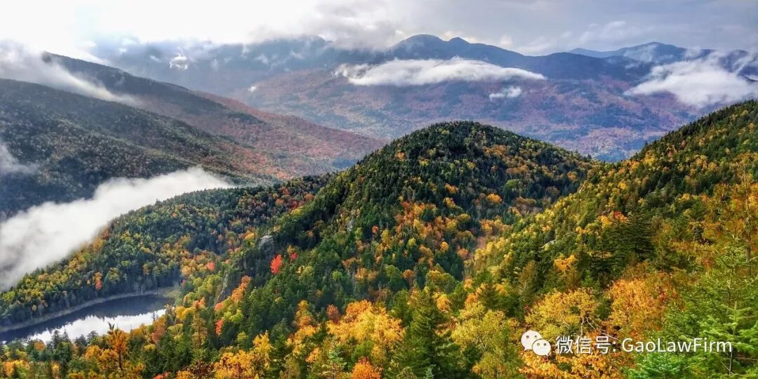 /阿迪朗达克公园的秋色。曾经这里被滥砍滥伐,大约一百多年前才开始环境保护/