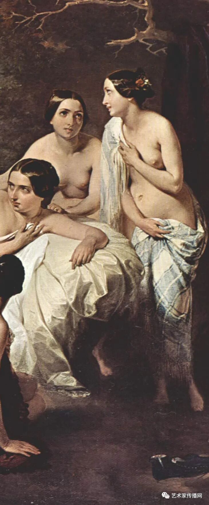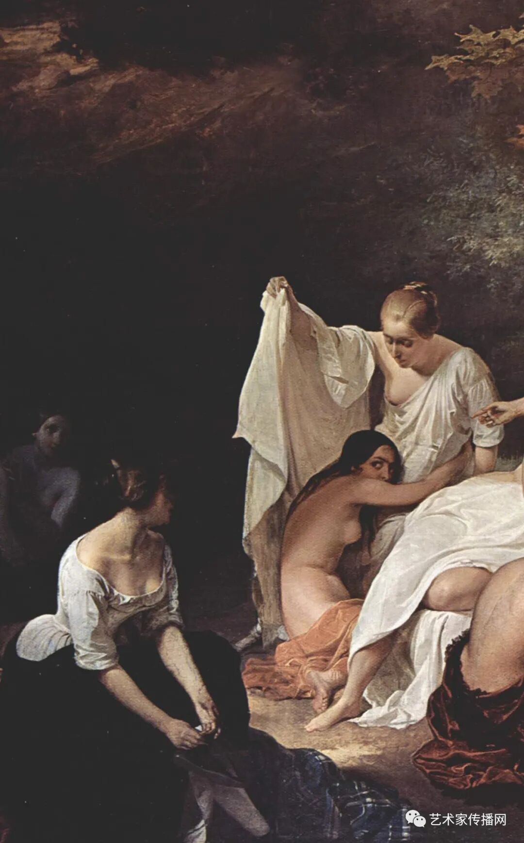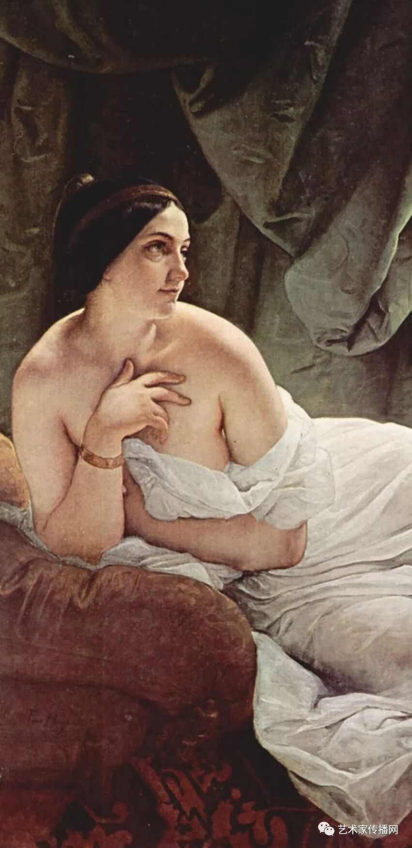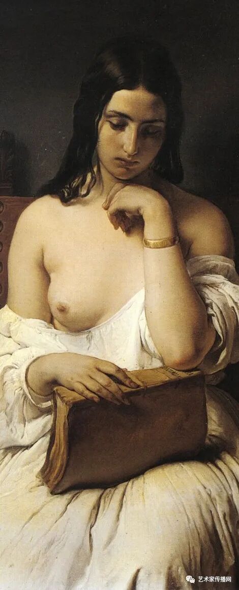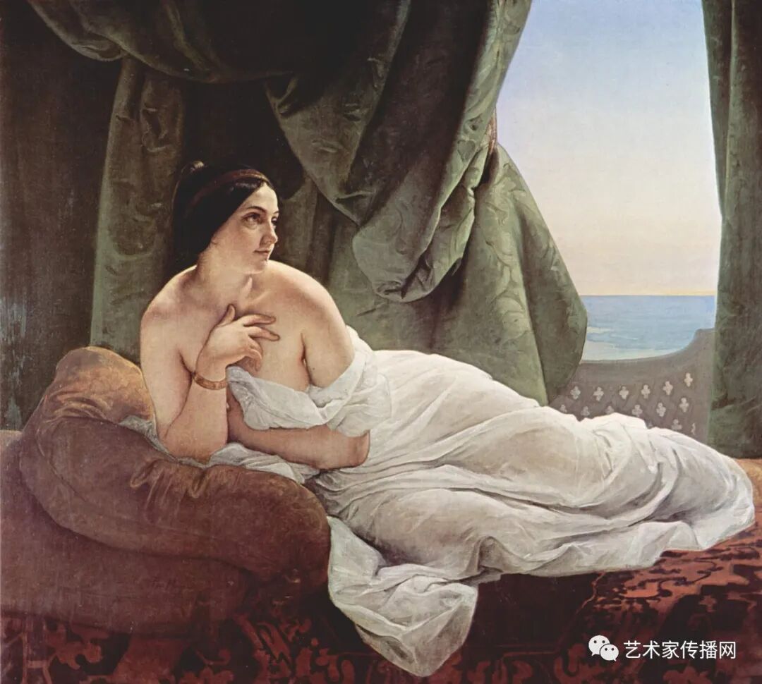相对新古典主义,他的画作中蕴含着更丰富的个人情感,因此有人将他归入浪漫主义。例如,对比法国新古典主义大师安格尔的名作《宫女》与海耶兹的《宫女》,便能体会这种微妙的差异。