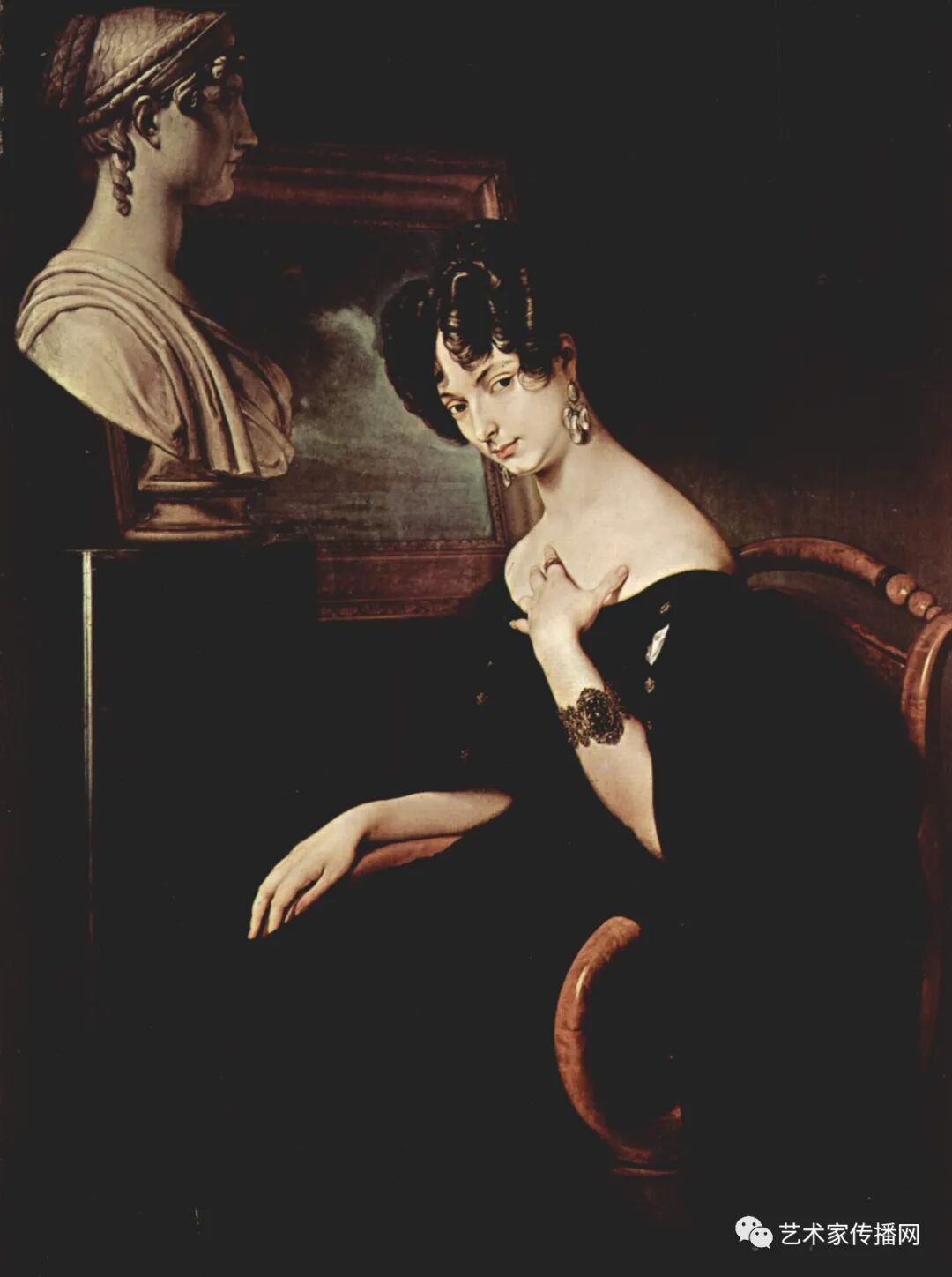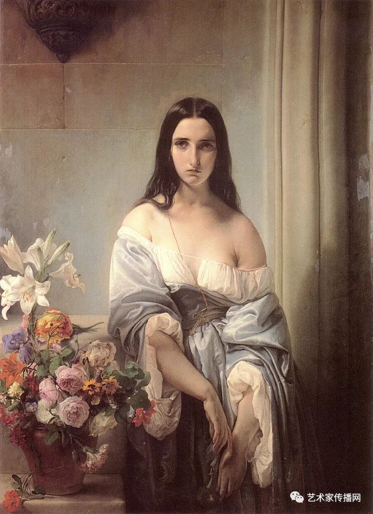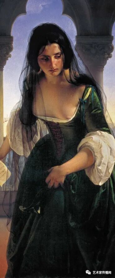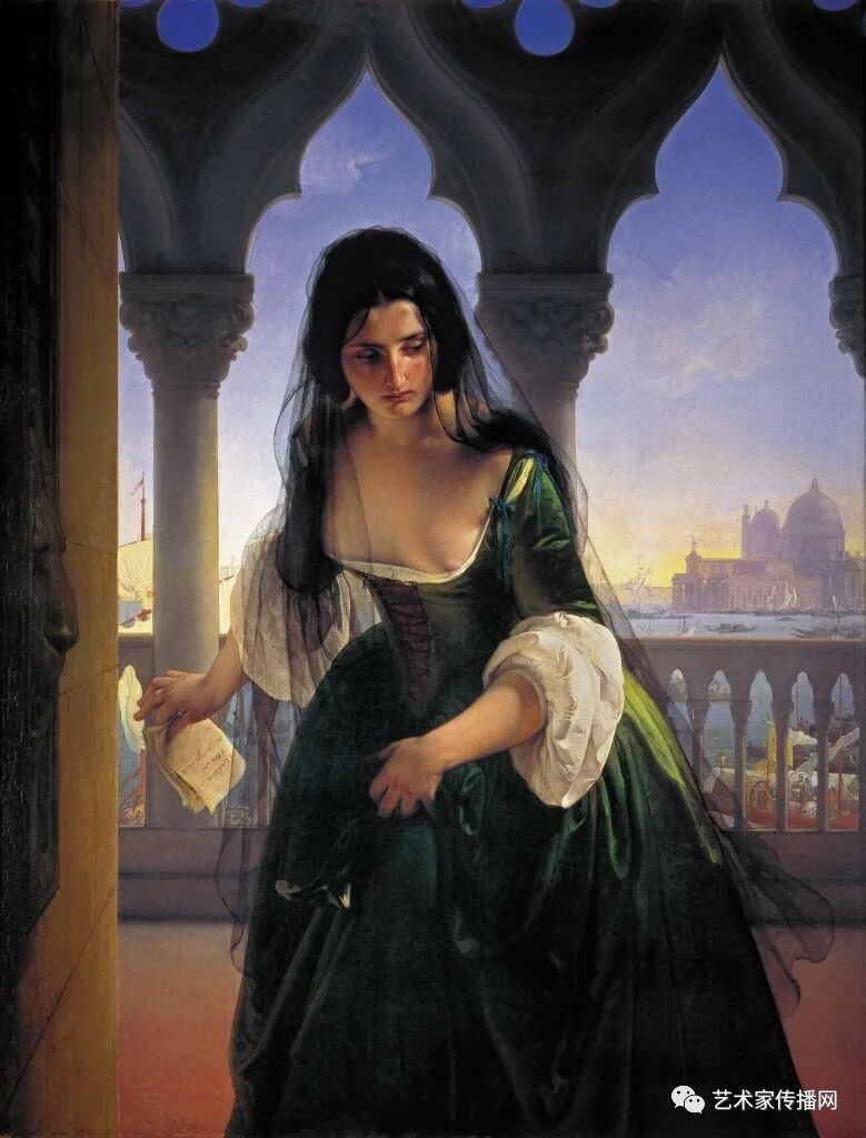 从18世纪末到19世纪,新古典主义取代了罗马艺术而占统治地位,古典文学再次崛起,这一时期欧洲出现了很多著名的画家,其中一位肖像画画家以其历史性的的油画,政治讽喻以及精美的肖像画而著名,他就是弗朗西斯科·海耶兹(Francesco Hayez )。