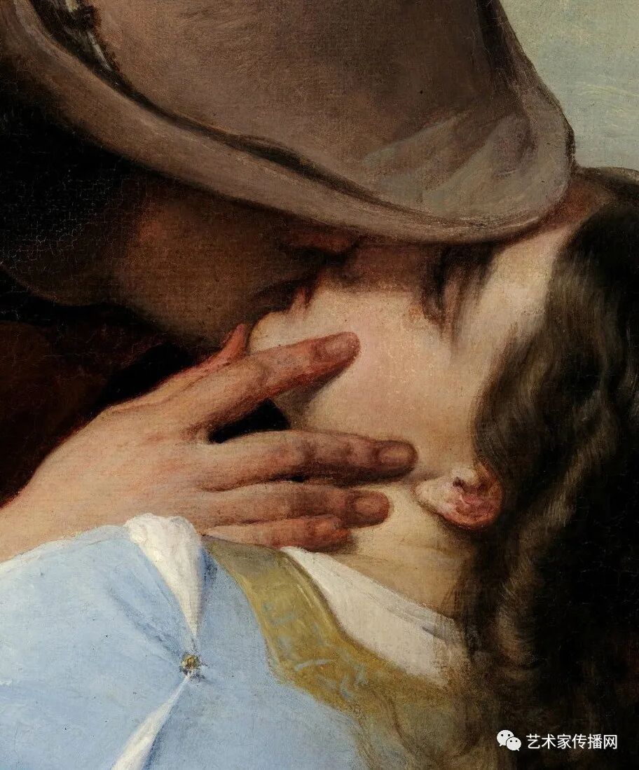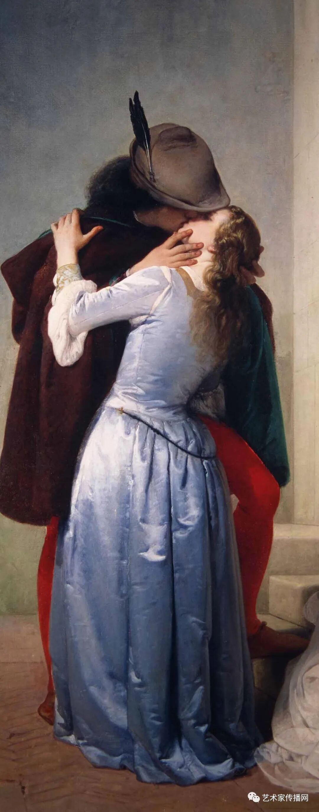 画家充满浪漫地将法国和撒丁王国的结合演绎为一男一女相拥而吻,令人叫绝。这幅作品后来成为了意大利统一运动的艺术象征之一,至今仍收藏在米兰的布雷拉画廊内。