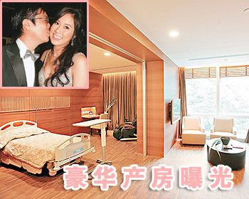 曹颖年初待产时,据传所住产房10万一天。房的室内设备设备完全比照五星级饭店:有液晶电视、DVD、免费宽频上网、干湿分离浴室,大床旁还另外隔一间“塌塌米”式的保姆间,可坐可卧,方便陪宿者休息和照顾母婴。产房内的空气非常地清新,每个产房都设有独立的空气净化交换设备。除了临床必用的医疗器具证明这是个病房,室内宽大的组合沙发、配置齐全的冲浪浴池以及全进口的音响设备,使整个病房俨然就是一个贵宾接待室。另外产房外设有客厅,提供了供亲人休息的布艺沙发,并随时更换新的沙发罩子。尤其一进门后设计的宽大布帘遮挡住整个房间,确保产妇隐私。而该产房外有门卫把守,外人一律禁止入内。