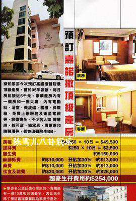 据悉,该医院仅门诊费就要2000元人民币,而且不是有病床就能入住产房,必须得到医生的首肯才能入祝此外,该医院普通标准产房要15000元一天,而特殊病房更是要3万元一天,费用已包括普通的护理。知情人称,相信护妻心切的邓超为孙俪选择的正是3万一天的特护产房,还不知邓超是否会增加一些护理费用。