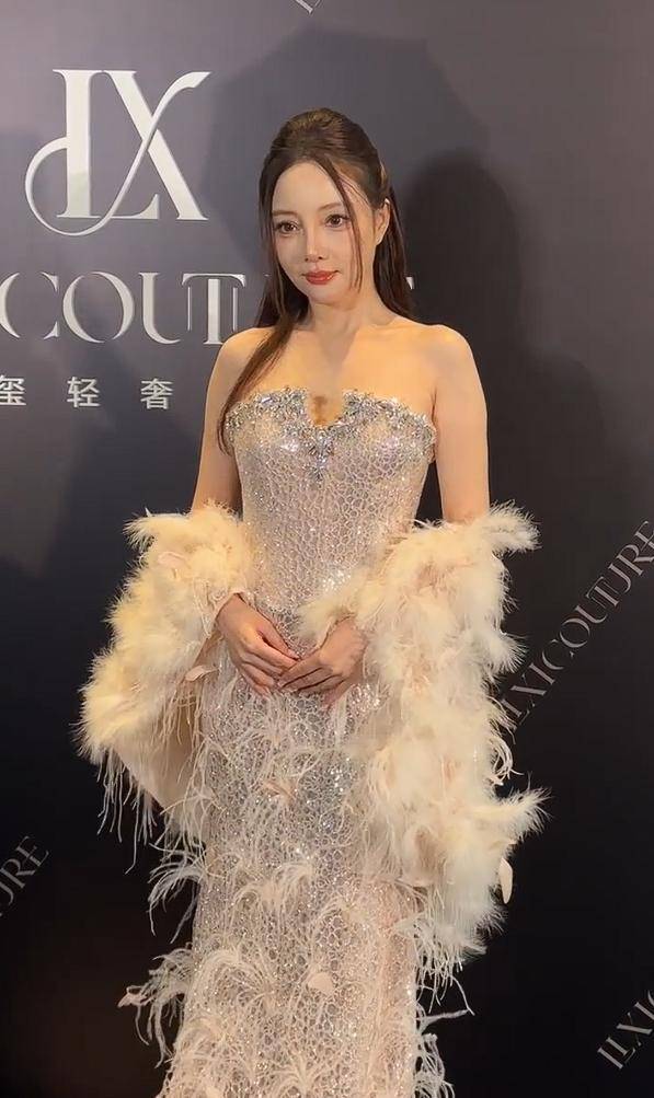 不得不承认,李小璐的肌肤真是白到发光,在现场灯光的照射下,她像一个行走的瓷娃娃,白皙光洁。