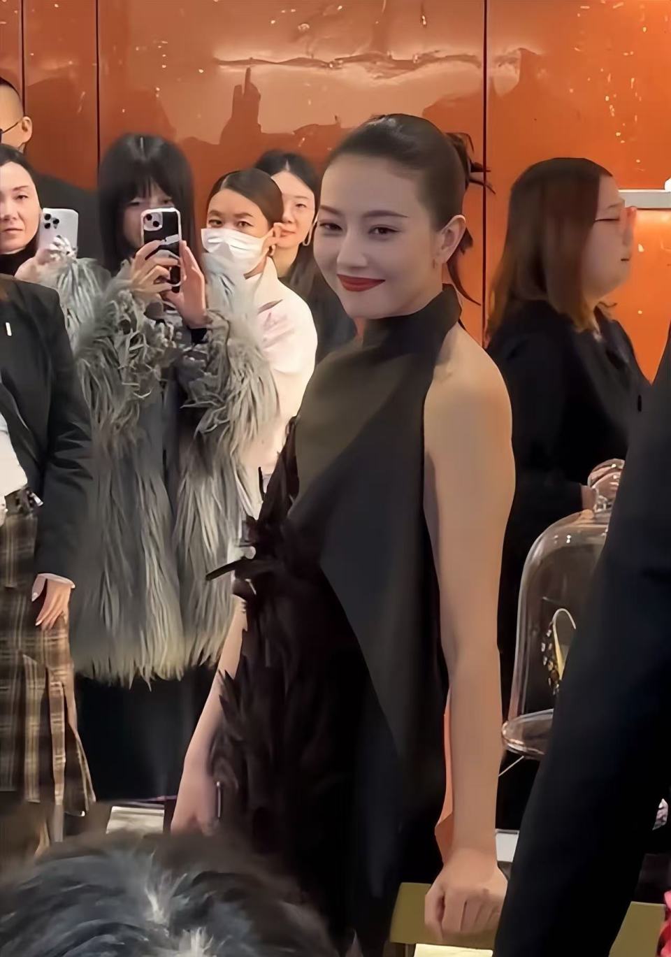 从现场照片来看,她的妆容精致,红唇明艳,给人一种只可远观的霸气感。