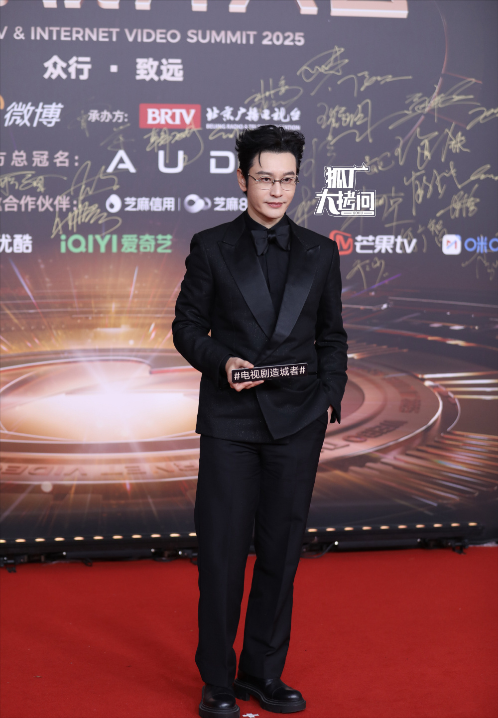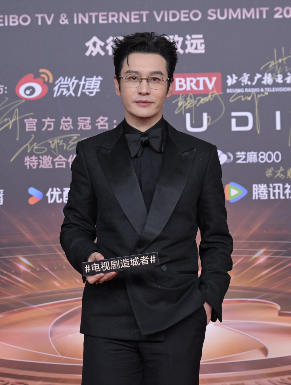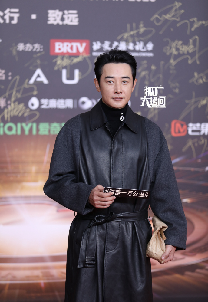 黄晓明的发型和插兜站姿看着像是刚演完霸总剧出来,眼神还带着几分迷离。