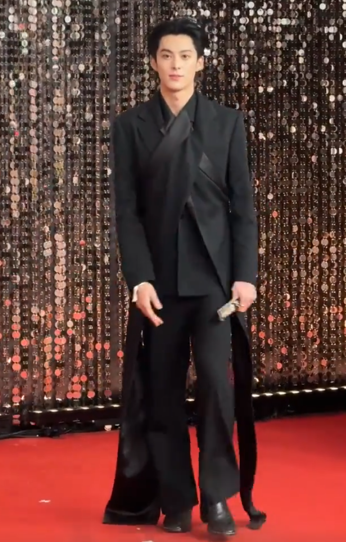 但是镜头拉回全身,搞怪的王鹤棣上线,西装上的两根飘带也有些滑稽好笑,瞬间变回桃花坞二愣子。