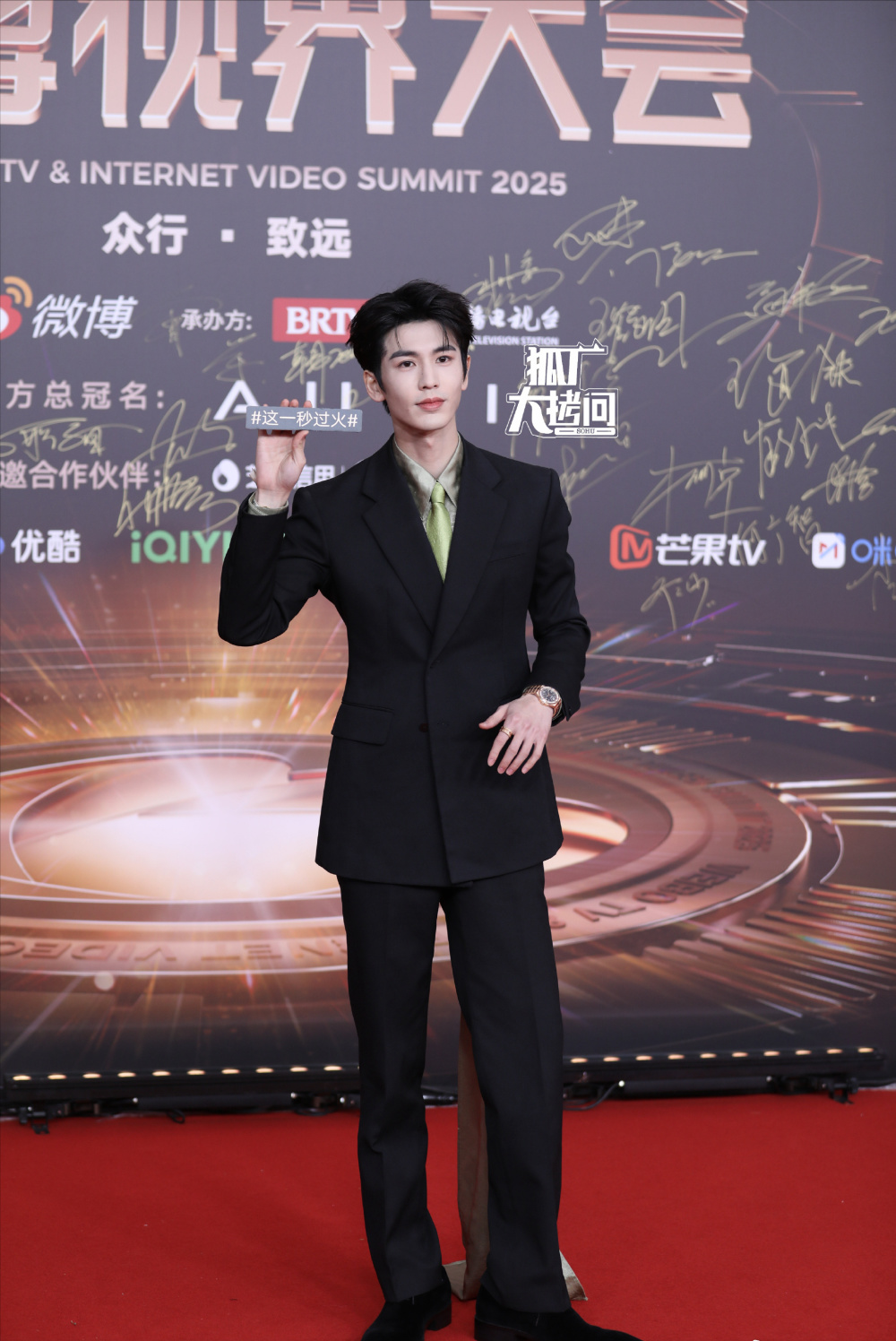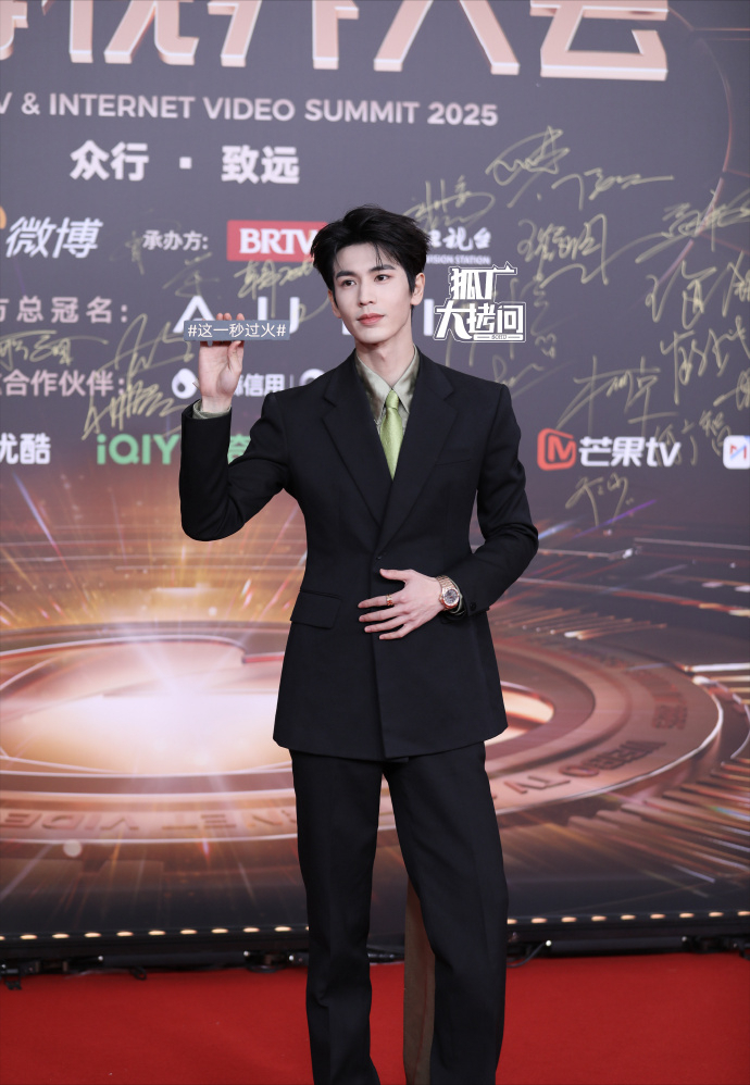 张凌赫黑色西装贵气有型,内搭的绿色丝绸衬衣是点睛之笔,没有黑白配那么沉闷。