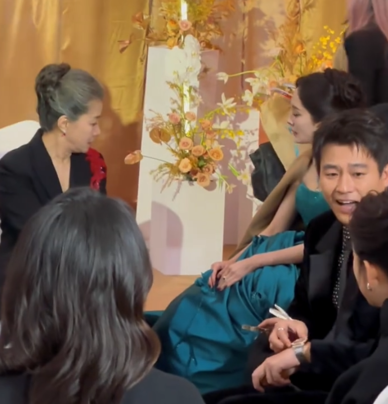 《生万物》播出取得好成绩,剧组成员私下互动也很有爱,一行人直接在台下聊起来了,迟蓬还给“媳妇”杨幂整理裙摆。