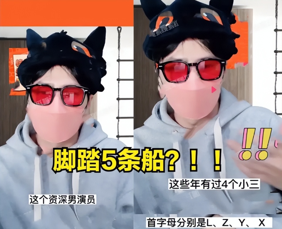 直至2023年,大狗仔在直播间放出猛料,声称一位资深男演员是“假正经”,表面看起来是“正人君子”,但私下里却有四位情人,对应的姓氏首字母分别是L、Z、Y、X。