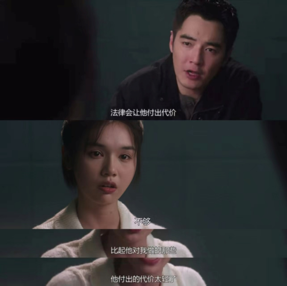 《猎罪图鉴2》的闵雪案中,遭到养父侵犯的张婷假冒未成年,只为让养父受到更严重的量刑。在警方说出“法律会让他付出代价”时,张婷绝望地说出“不够”“太轻了”,所以她不惜用违法的方式来让养父受到更重的惩罚;《漫长的季节》中的沈墨、《命悬一生》中的吴细妹,用反杀施暴者来进行泄愤与复仇,并因此走上逃亡之路。