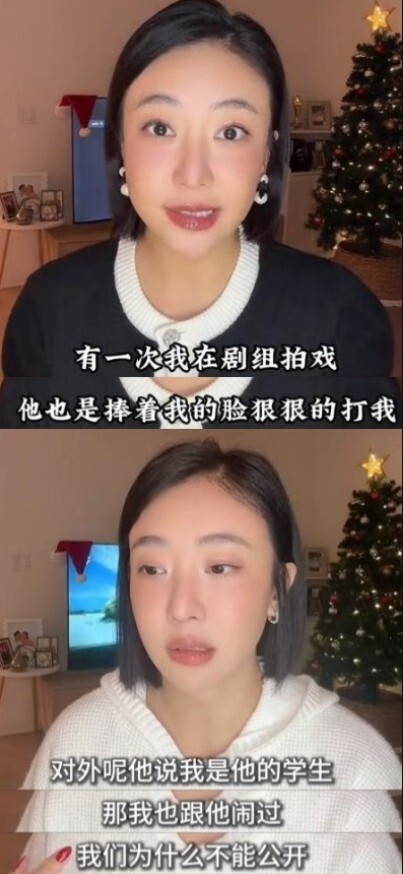 在前一个视频里,她说被男明星在剧组当着很多人的面扇耳光。