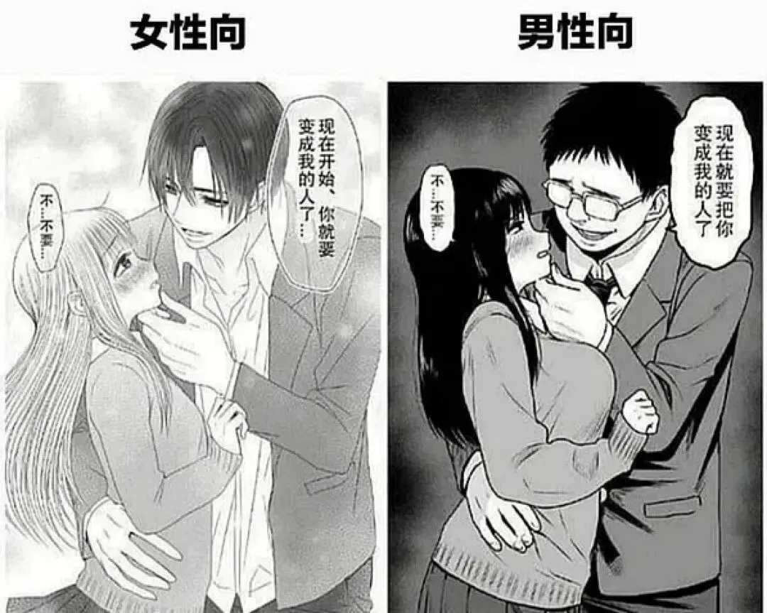 男主角的掐脖、囚禁等行为,则是一种强制爱的演绎。大家喜欢看男主爱到痛心,把女主角一把抓过来,关进仓库,然后背对着门慢慢滑坐下来,崩溃哭泣:“为什么你不肯爱我?”