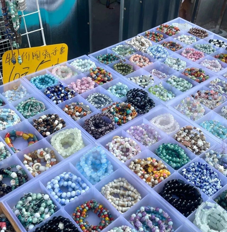 佳灵大一时,位于景德镇东郊的陶阳新村,摊位上卖的东西都特别稀奇古怪,而现在这里遍地是陶瓷花,遍地都是10元三串的陶瓷手串,比之前无聊许多。