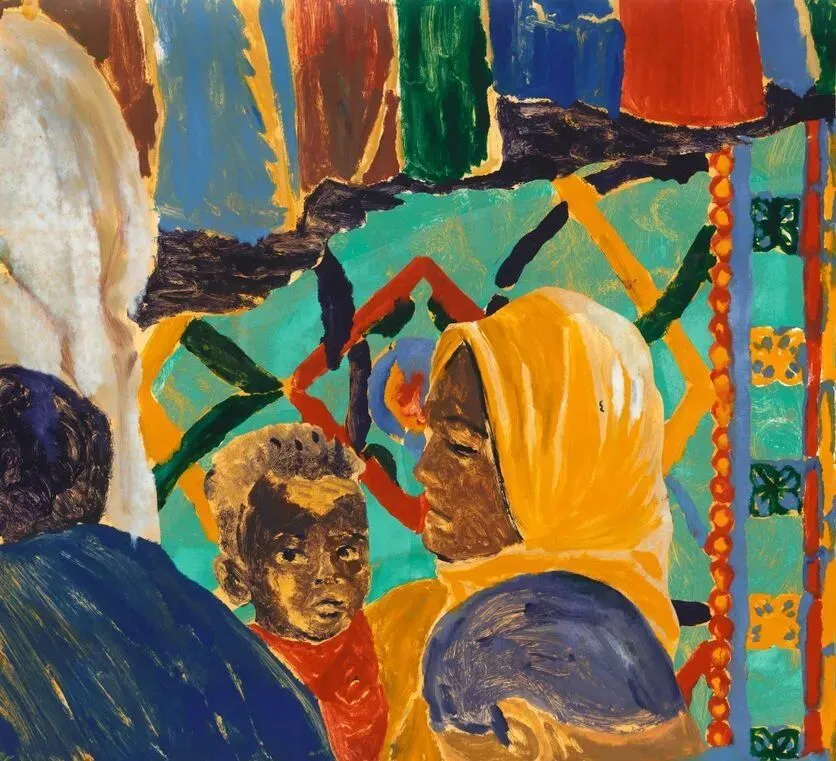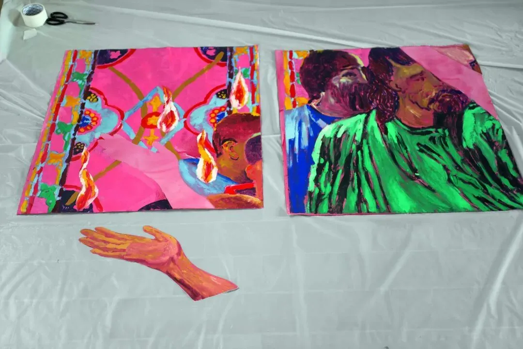 画面中出现了肤色黝黑祈祷的使徒(似乎在提醒着人们富饶的非洲大地对法国发展所作的贡献)、弯曲的树木、狂乱的圣母玛利亚,以及色彩斑斓的晕染。