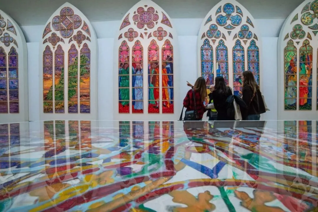 souffle)的展览,展出了由获胜艺术家克莱尔·塔布雷(Claire Tabouret)设计的彩窗模型。