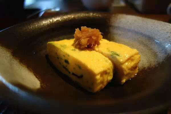 日式煎蛋卷:一般冷菜和寿司上我们迟到的日式蛋卷是甜的,不过这货有时候也是咸的。说到这里说个冷笑话,日本女子很多的名字都是什么子什么什么子的,但惟独没见过玉子对不对?因为玉子(tamago)是鸡蛋的意思拉……谁会给自家女儿起名字叫鸡蛋啦!XDDD……
