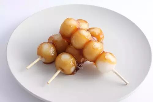 这里的团子是一串一串的,通常是甜味的。