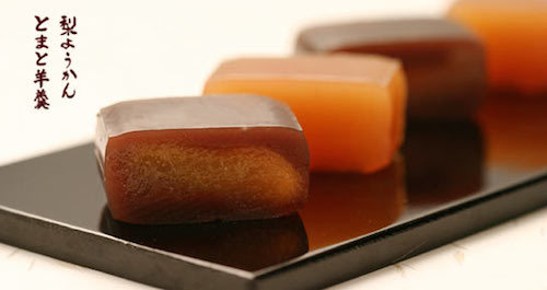是一种以红豆/栗子/芋头等为材料制作的凝胶类甜品。相传羊羹起源于中国。初期,羊羹的确是一种加入羊肉煮成的羹汤,再冷却成冻佐餐(水晶羊肉冻?我们这不现在还在吃么0.0)。后期羊羹传至日本,但在镰仓时代至室町时代佛教的禅宗传入,由于僧侣戒律不能食荤,故羊羹亦慢慢演化成为一种以豆类制成的果冻形食品。