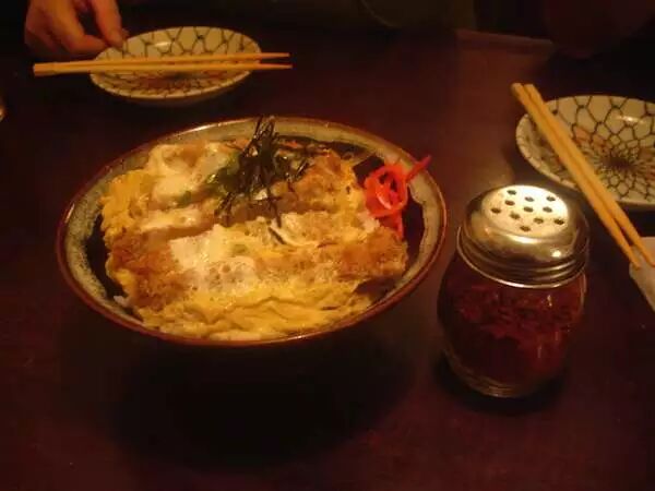 炸猪排放到煮开的酱油汤汁里,淋上蛋液制成浇头的盖饭。值得一提的是katsudon里的katsu和日语里『胜利』的发音相同,所以炸猪排丼又被成为胜丼=v=。所以在重要的考试或者比赛前有的霓虹金喜欢吃一碗丼来给自己打气。