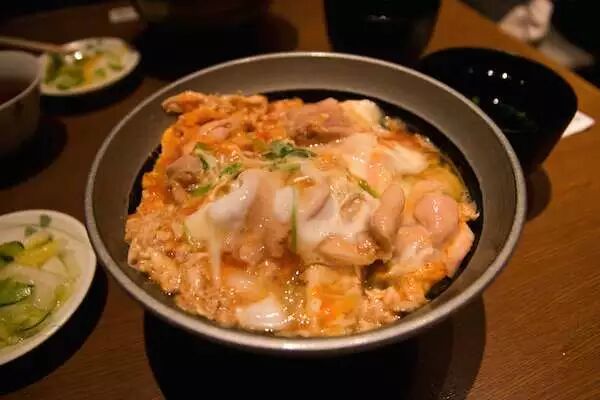 鸡肉蛋盖饭,就是鸡肉加味淋和日式酱油煮熟,淋上蛋液煮开后淋在饭上。想起日本人自己的一个吐槽:『说到亲子一般都是父母抱着孩子啊,为什么亲子丼里是孩子抱着爹妈呢?』谁知道,好吃就行!-v-